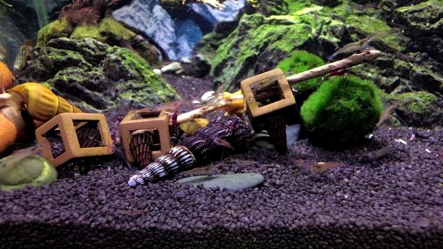 Улитка тиломелания схватила креветку кардинала смотрим...