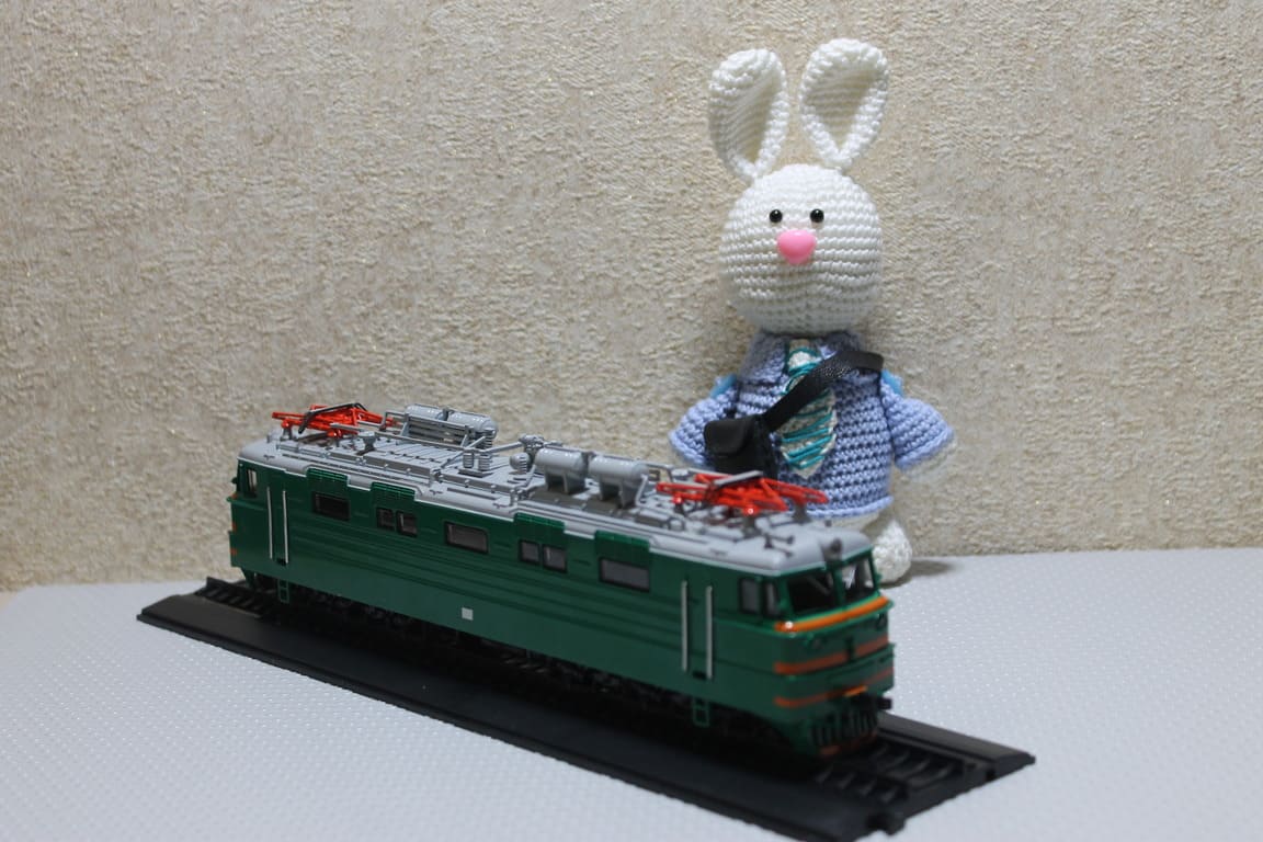 Проект «Наши поезда» – серия моделей поездов в масштабе «1:87» от компании «Modimio». Первая в России коллекция отечественных локомотивов. 1-ый выпуск в серии. Материал – пластик (корпус), металл (рама). Размеры – 24*4*8 см. «ВЛ60» (в честь Владимира Ленина, тип-60, 6-осный Однофазный, до января 1963 года – «Н6О», – Новочеркасский 6-осный Однофазный) – первый советский магистральный грузопассажирский электровоз переменного тока, запущенный в крупносерийное производство. В 1960-ых годах наравне с «ВЛ8» и «ТЭ3» являлся одним из основных локомотивов на советских железных дорогах. После постройки опытных электровозов «ВЛ62» с кремниевыми выпрямителями Новочеркасский электровозостроительный завод в конце 1962 года выпустил два электровоза «ВЛ60К». Электровоз «ВЛ60К−002» прошёл испытания на экспериментальном кольце ЭлНИИ. Электровоз «ВЛ60К−001» после выхода с завода сразу же поступил для эксплуатации на Северо-Кавказскую железную дорогу. В 1963 году НЭВЗ выпустил ещё несколько электровозов «ВЛ60К» с тяговыми электродвигателями «НБ-412М», а во второй половине 1965 года завод вместо электровозов «ВЛ60» начал выпускать электровозы «ВЛ60К» с кремниевыми выпрямителями и тяговыми электродвигателями «НБ-412К». По своим тяговым характеристикам эти электровозы незначительно отличаются от электровозов «ВЛ60» с тяговыми электродвигателями «НБ-412К» и имеют одинаковые с ними номинальные значения силы тяги и скорости при часовом и длительном режимах. «ВЛ80К» – электровоз, предназначен для работы с грузовыми поездами на магистральных железных дорогах, электрифицированных на переменном токе (25 000 В, 50 Гц). Всё оборудование электровоза рассчитано на надёжную работу при напряжении в контактной сети от 19 000 до 29 000 D, а также при изменении температуры окружающего воздуха от -50° С до +40° С вне кузова электровоза. Всего был выпущен 501 электровоз серии «ВЛ60К». Такое же наименование получили и все ранее выпущенные «ВЛ60», переоборудованные с игнитронных выпрямительных установок на полупроводниковые (кремниевые).