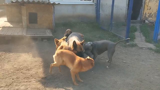К привычной компании собак добавились ещё и щенки