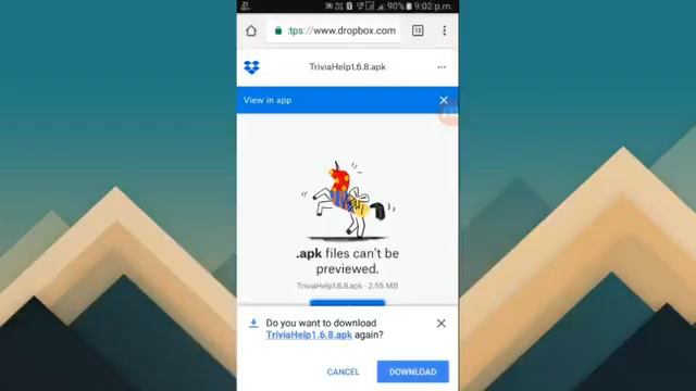trivia help 1.6.8 version:-https://www.dropbox.com/s/fshw1ydc980u5o8/TriviaHelp1.6.8.apk?dl=0 trivia help 1.8 version:-http://shrtfly.com/CEMxi