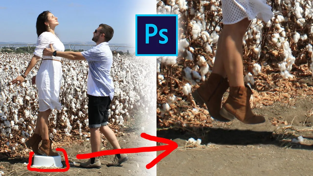 Как убрать опору на парящей фотографии в фотошопе