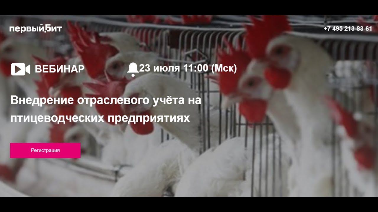 Запись вебинара "Внедрение отраслевого учёта на прицеводческих предприятиях", часть первая. Специалисты компании «Первый Бит» по автоматизации процессов птицеводства провели серию вебинаров, в которых разобрали подробно каждый контур отрасли. На первом вебинаре речь идёт о методике организации отраслевого учёта на птицеводческом предприятии, правильном выборе программного продукта в соответствии с вашими задачами. Эксперты рассказывают об особенностях учёта по всем процессам птицеводства — от плана посадки птицы до её выбытия, а также про отраслевую отчётность.