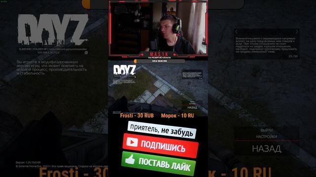 Привет дорогой друг, на этом канале ты прознаешь что такое игры и весёлое настроение, если хочешь что то узнать нажимай кнопку "подписаться", а так же можешь просто узнать у меня задав вопрос, приятного просмотра и позитива ИГРАЮ НА ПРОЕКТЕ / / SUNSHINE STALKER RP https://discord.gg/sunshinestalker IP: 109.248.4.36 Port: 2302 ДОНАТ В ПОДДЕРЖКУ КАНАЛА https://www.donationalerts.com/r/masik3310 МОЙ ДС КАНАЛ https://discord.gg/MTnbnX9A МОЙ ТГ КАНАЛ t.me/M_A_S_1_K МОЙ ПК: МАТЕРИНСКАЯ ПЛАТА // ASUS PRIME Z370-P ПРОЦЕССОР // I7 8700K ВИДЕОКАРТА// GEFORCE GTX 1060 6GB ОПЕРАТИВНАЯ ПАМЯТЬ // CORSAIR VENGEANCE IPX DDR4 2x8GB 2400MHZ БЛОК ПИТАНИЯ // CORSAIR VS 650 HDD НАКОПИТЕЛЬ // WD BLUE 1TБ SSD НАКОПИТЕЛЬ // GIGABYTE 256GB M2 НАКОПИТЕЛЬ// NETAC NV2000 512GB РАЗРЕШЕНИЕ 1920x1080 ИГРАЮ В 120+ КАДРОВ
