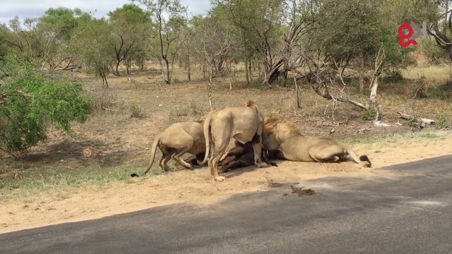 В Национальном парке Крюгера в ЮАР гид и группа туристов стали свидетелями охоты львов, которые 25 февраля 2016 года прямо на глазах ошеломленных людей завалили буйвола.