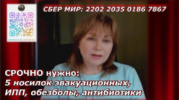 ДОРОГИЕ ДРУЗЬЯ! Хочу еще раз всех поблагодарить за ту поддержку и заботу о наших ребятах, которые сейчас находятся на передовой. В видео материал о том кому и куда пошла наша помощь. Конечно же, мы не волонтеры, НО! Сегодня мы не можем стоять в стороне, когда наша Родина в опасности. ДРУЗЬЯ! От нас снова ждут помощь на фронте! ‼️⚡️⚡️⚡️СРОЧНО нужно: 5 насилок эвакуационных, ИПП, обезболы, антибиотики СБЕР МИР: 2202 2035 0186 7867 Также можно отправить и через донаталертс: https://www.donationalerts.com/r/ognennay_roza Все отчеты будут также в телеграм-канале. С уважением, Надежда Луганская #НадеждаЛуганская #ЛНР #Донбасс #Россия ПОДПИШИСЬ 👉🏻 @NadezhdaLuganskaja-НД (https://t.me/NadezhdaLuganskaja) 👉🏻 ОБЩАЛКА (https://t.me/+VZrAFhH6D-CTBJb4) ЭФИРЫ и ВИДЕО 👉🏻 ПЛАТФОРМА (https://plvideo.ru/channel/SkOyqn_r91tU) 👉🏻 RUTUBE (https://rutube.ru/channel/7207735/) 👉🏻 VK Play Live (https://live.vkplay.ru/nadezhda_luganskaya-or) 👉🏻 Дзен (https://dzen.ru/id/5e41c3910b57ac341e4fb59b)