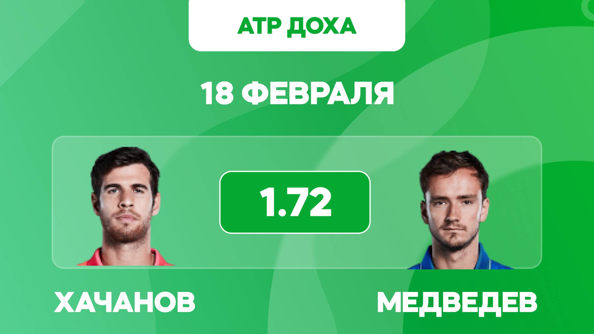 Прогноз на матч Хачанов - Медведев / Доха - 18 февраля. Наш сайт - https://overbetting.ru