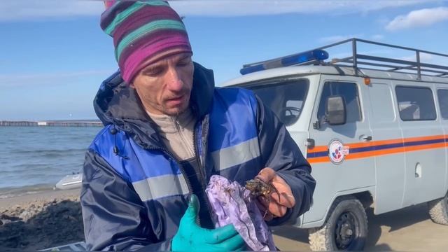 Вот так в Анапе чистят крабов от мазута