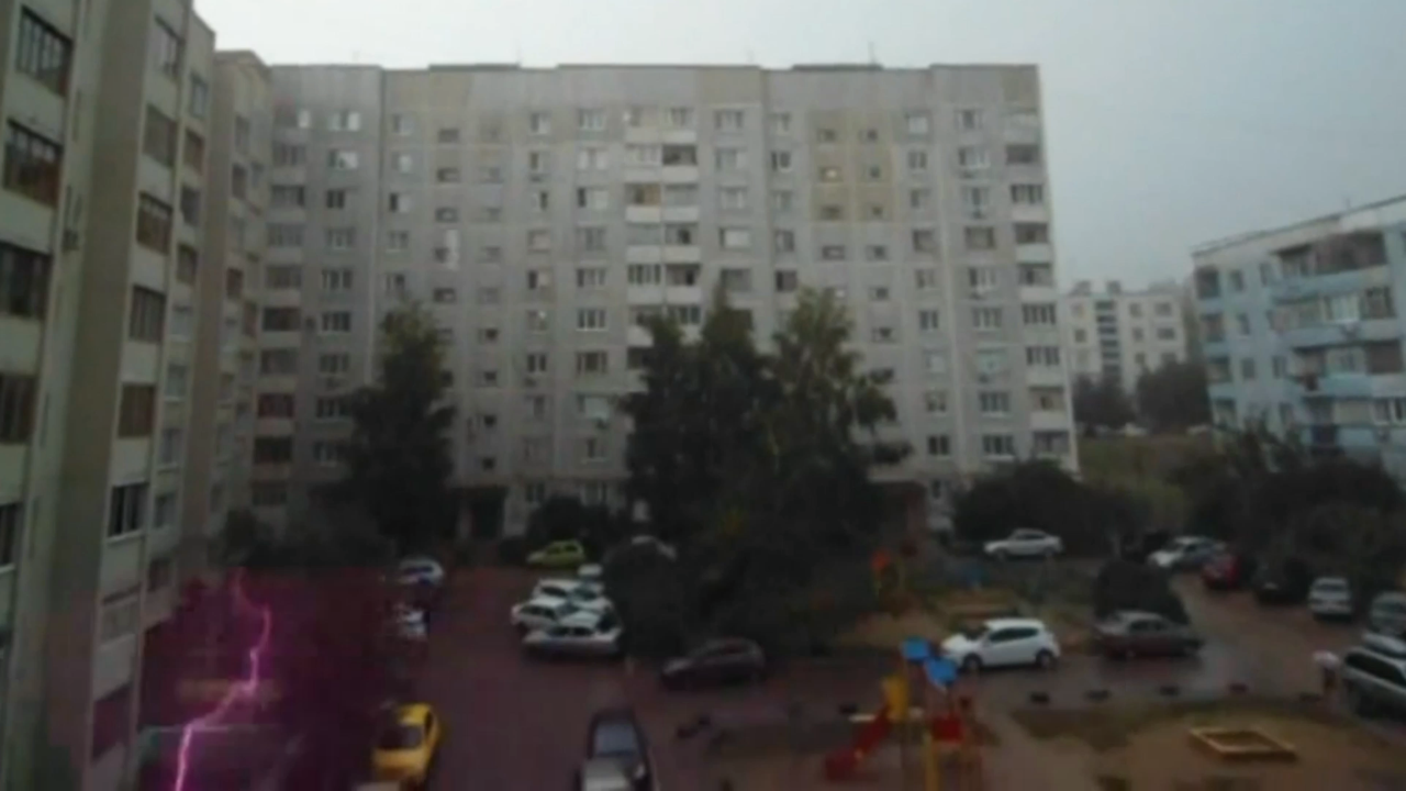 Стояла на лоджии и снимала на видео грозу (люблю когда идёт дождь). А когда стала просматривать кадры, обнаружила, что молния-то ударила рядом с домом! Показываю её вам в замедленном действии. Будьте осторожны во время грозы!