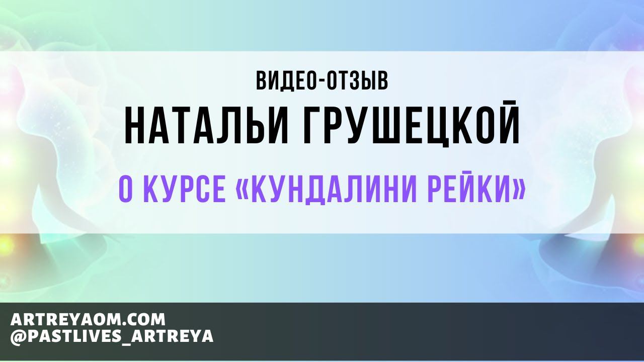 Отзыв Натальи Грушецкой о курсе «Кундалини Рейки» ★★★★★★★★★★★★★★★ Записаться на сеанс регрессии: https://info.artreyaom.com/zapis_na_seans ✳️ Мои курсы и сеансы: https://taplink.ru/profile/236603/pages/ ⚛️ Отзывы: https://info.artreyaom.com/feedback ★★★★★★★★★★★★★★★ Я в соц. сетях ✳️ Телеграмм канал: https://t.me/artreya_probuzhdenie_dushi Instagram - https://www.instagram.com/pastlives_artreya Facebook - https://www.facebook.com/groups/regressivetherapy/ VK - https://vk.com/mypastlives ★★★★★★★★★★★★★★★ ⚛️ Записи сеансов: https://www.youtube.com/playlist?list=PLCF-gS3z_oZpVotcAAVMWU18xonx6jFq0 ⚛️ О сеансах регрессии: https://www.youtube.com/playlist?list=PLCF-gS3z_oZoaZDyPDDyrkoJpkBj06MYn ⚛️ Медитации: https://www.youtube.com/playlist?list=PLCF-gS3z_oZqpLpDN2YfRsS6Lp_J3S_9Z ⚛️ Мои вебинары: https://www.youtube.com/playlist?list=PLCF-gS3z_oZoKSbK1OV76dgivoBcaOnLe ⚛️ Отзывы: https://www.youtube.com/playlist?list=PLCF-gS3z_oZo4eFWBeMG4Tzbk1ptLHGf9