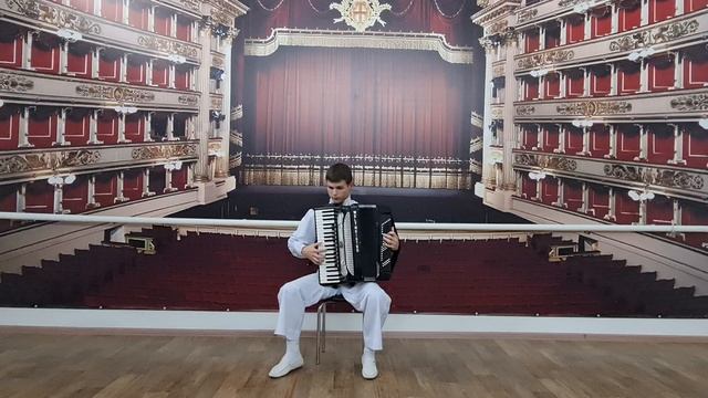 1.А.Петров перелож.А.Тихончука Вальс из кинофильма "Берегись автомобиля"; 2.В.Черникова Импровизация на тему песни Б.Мокроусова"Одинокая гармонь"; 3.Р.Гальяно "Вальс Марго"; 4.Ю.Казаков Вариации на тему укр.нар.песни "Ехал казак...".