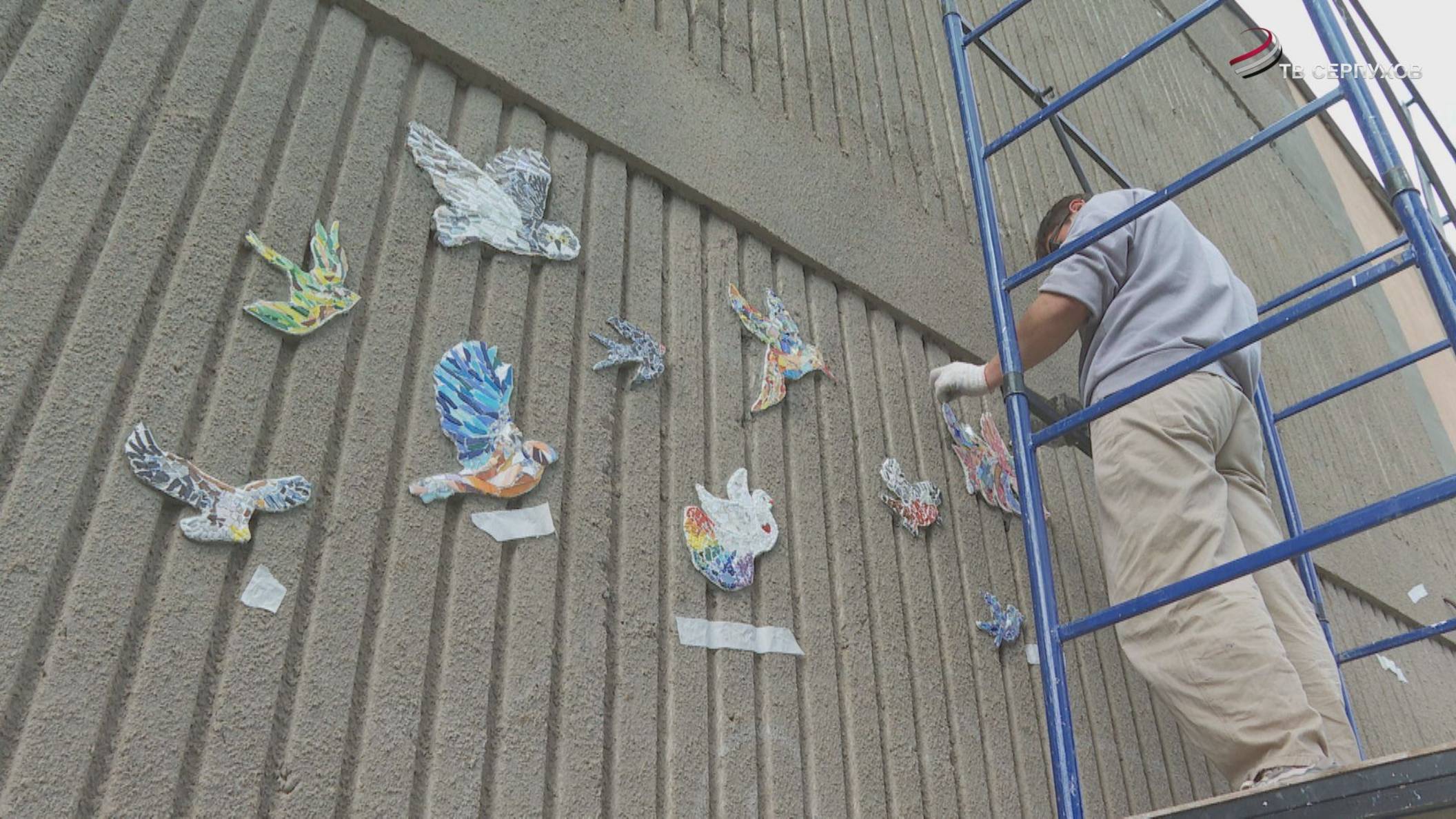 В Серпухове 80 мозаичных птиц украсят фасад дома на улице Горького