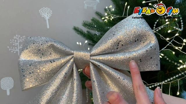 297117 Украшение бант серебряный с блестками 25см