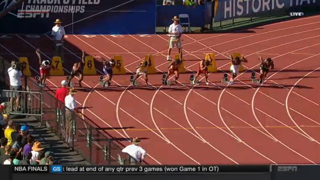 Men 100 Meter Dash (Final) Place Name Affiliation Time Heat (Pl) 1 Andre De Grasse JR USC 9.75 +2.7 1 (1) 2 Trayvon Bromell SO Baylor 9.88 +2.7 1 (2) 3 Jarrion Lawson JR Arkansas 9.90 +2.7 1 (3) 4 Senoj-Jay Givans SO Texas 9.97 +2.7 1 (4) 5 Kendal Williams FR Florida State 9.98 +2.7 1 (5) 6 Tevin Hester JR Clemson 10.03 (10.027) +2.7 1 (6) 7 Kolby Listenbee SO TCU 10.03 (10.029) +2.7 1 (7) 8 Clayton Vaughn SR UT-Arlington 10.04 +2.7 1 (8)