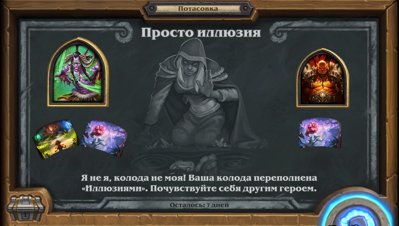 Потасовка в Hearthstone, в период с 30.11.2022 - 07.12.2022 Потасовка: Просто иллюзия Я не я, колода не моя! Ваша колода переполнена "Иллюзиями". Почувствуй себя другим героем.