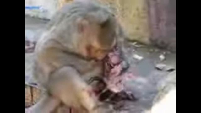 Обезьяна-мать после рождения малыша