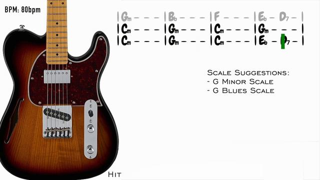 Smooth Blues Soul Guitar Backing Track Jam In G Minor 80Bpm