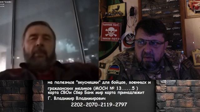 на полезные "вкусняшки" для бойцов, военных и гражданских медиков (МОСН № 13......5 ) : карта СВОи Сбер Банк мир карта принадлежит Г.Владимир Владимирович 2202 2070 2119 2797 карта ПСБ Банк МИР. карта принадлежит Г.Владимир Владимирович 2200 0303 1063 9290 карта ВТБ Банк МИР Г. Владимир Владимирович 2200 2402 3812 9130 карта Тинькофф принадлежит сыну Г. Никита Владимирович 5536 9100 2609 9012 QWI PAY-PAL WEB MANY- www.donationalerts.com/r/drujinnik Спасибо Яндекс. Дзен zen.yandex.ru/id_drujinnik ВК "Дружинник Бдительный" vk.com/id736176766 Телега t.me/yadrujinnik www.donationalerts.com/r/drujinnik