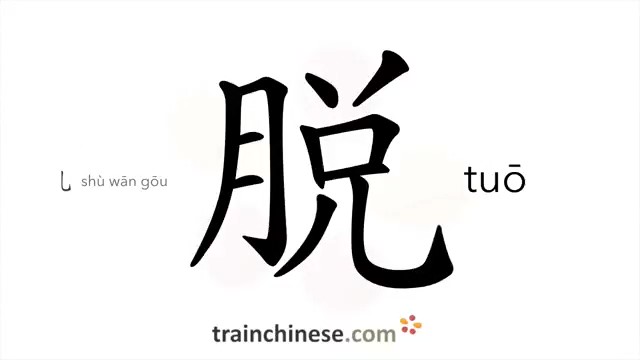 脱 (tuō) take off; get away; escape; shed; doff