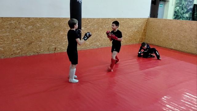 Отработка комбинации ММА с двумя партнерами. Детская группа ММА