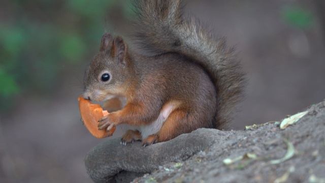 Красивая белка ест морковку