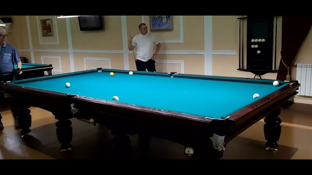 Биллия 5 шаров в исполнении Владимира в партии по омке в русском бильярде