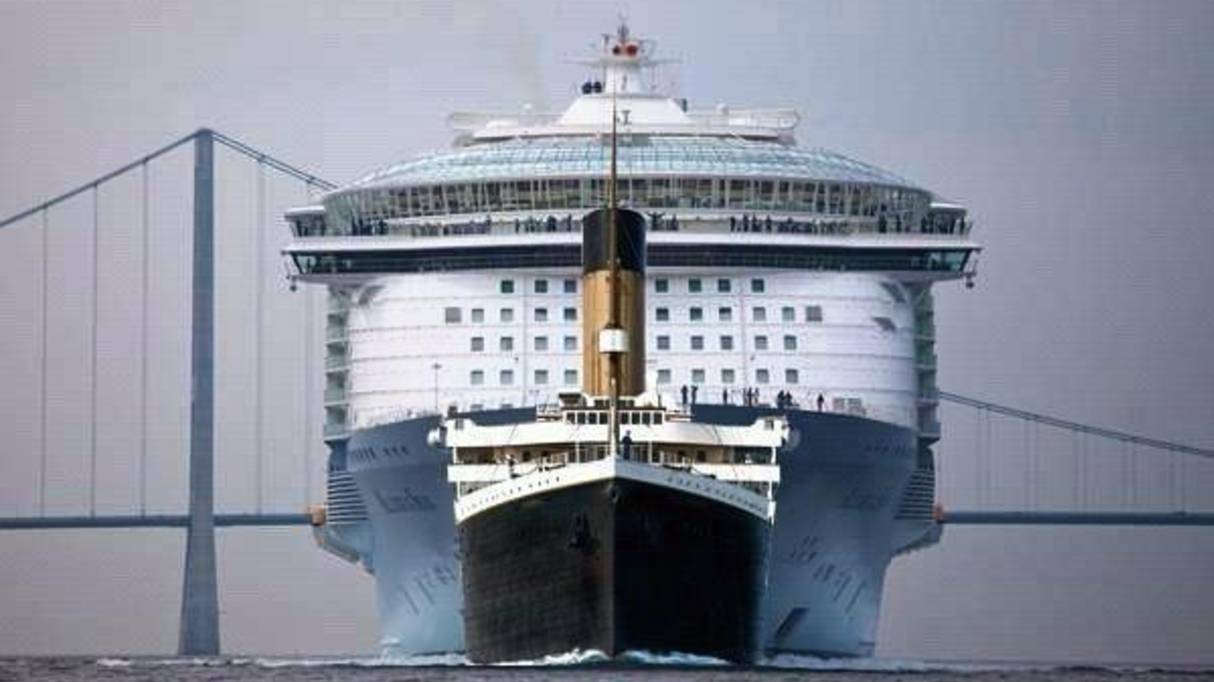 Океанический лайнер Симфония Морей по сравнению с Титаником