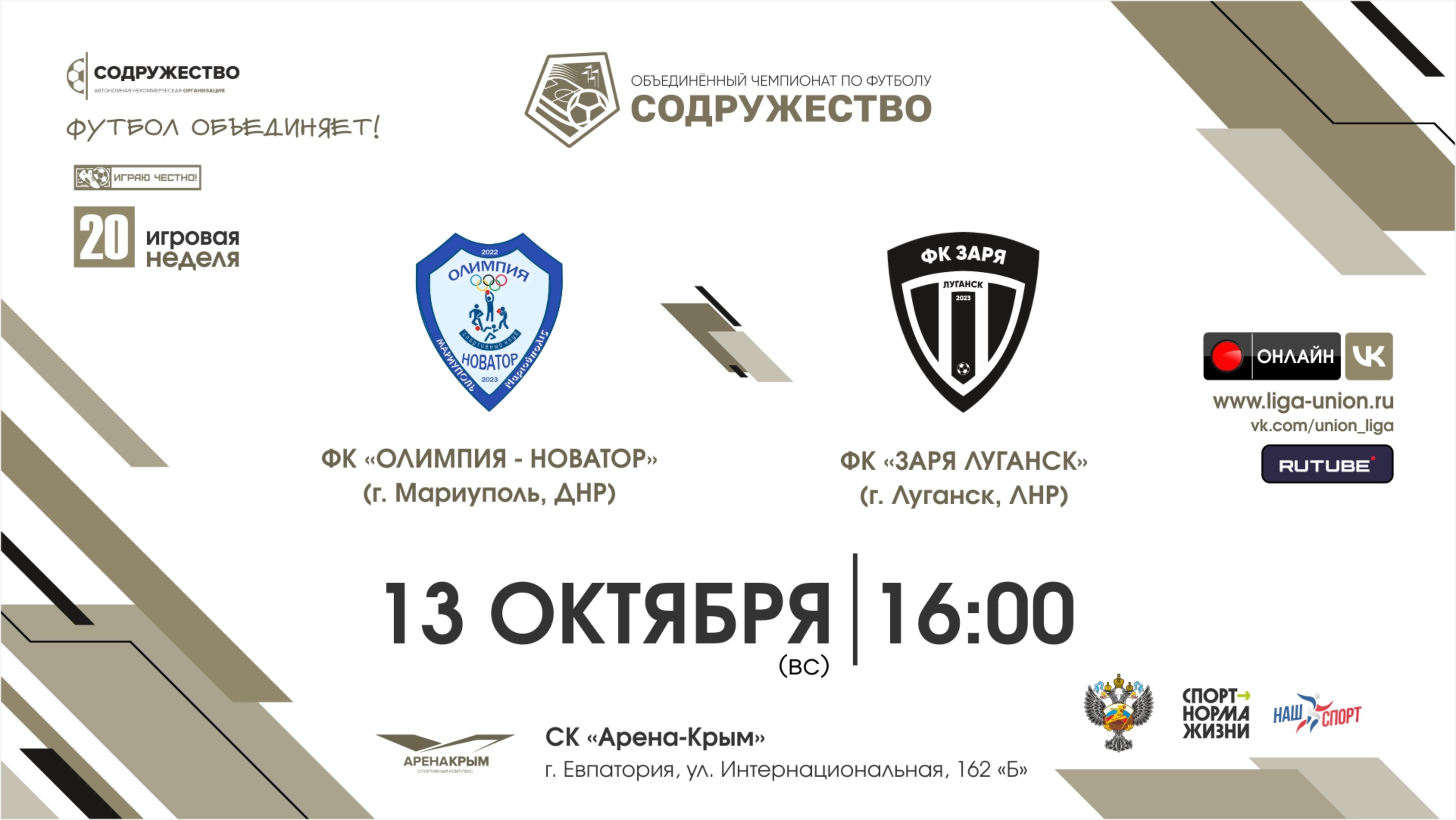 20 игровая неделя | ФК "Олимпия - Новатор" (г. Мариуполь, ДНР) vs ФК "Заря Луганск" (Луганск, ЛНР)