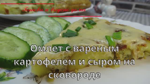 Омлет с вареным картофелем и сыром на сковороде