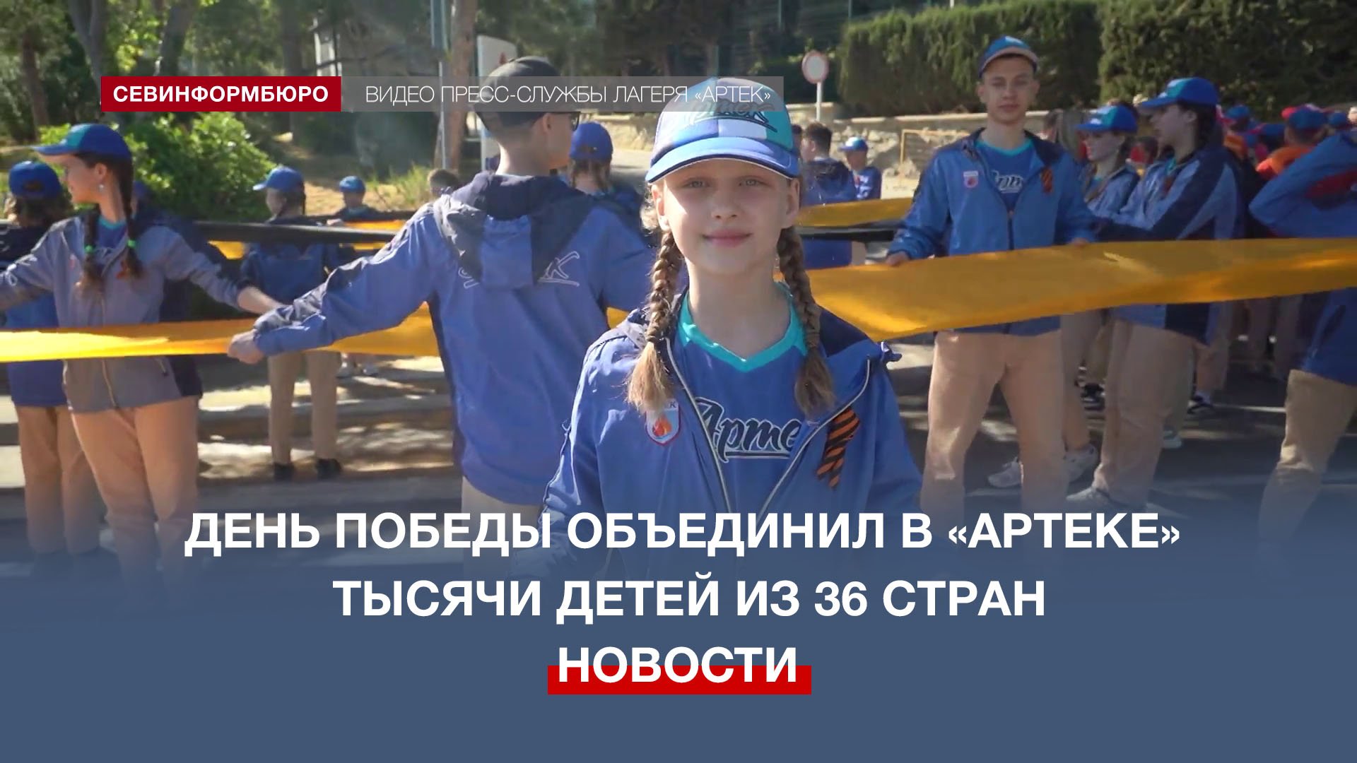 Накануне Дня Победы в «Артеке» несколько тысяч детей из 36 стран мира приняли участие в акции «Георгиевская ленточка». На территории набережной – между лагерями «Лазурный» и «Морской» ребята развернули главный символ праздника – ленту длиной в 1 километр. Подписывайтесь на наш Телеграм-канал: https://t.me/nts_novosti Смотрите новости Севастополя и Крыма на сайте НТС: http://nts-tv.com В нашей группе "ВКонтакте": https://vk.com/ntssevastopol На странице в "Одноклассниках": https://ok.ru/ntssevastopol