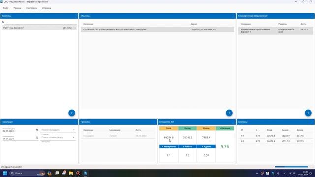 Приложение позволяет создавать коммерческие предложения для ваших клиентов на лету с последующим экспортом предложения в формат MS Excel. Загрузить из Microsoft Store: https://www.microsoft.com/store/apps/9MXGLV8M52GJ Предложение после экспорта оформлено в удобном формате, имеет Итоговый лист с перечислением всех разделов (систем) и отдельно спецификаций с перечнем материалов и услуг. Ценовая политика стоимости оборудования, материалов и работ сразу представлена в виде ссылок на другие листы и прописанных формул общей суммы предложения и других показателей. Также автоматически добавлены скрытые колонки, с ценами входа, которые не должен видеть заказчик, для экономической оценки предложения и понимания доходности предложения (например для оценки и согласования с руководителем). Идеально подходит для небольших строительных компаний, или любых других предприятий которые продают товары, материалы и оказывают услуги.