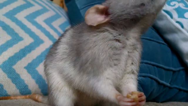 Cute Dumbo Rat eating a cherrio