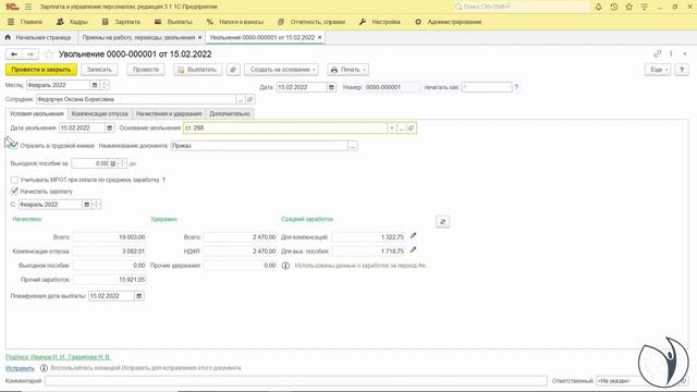 Как оформить увольнение в 1С. Практический пример | Елена Боровкова. РУНО