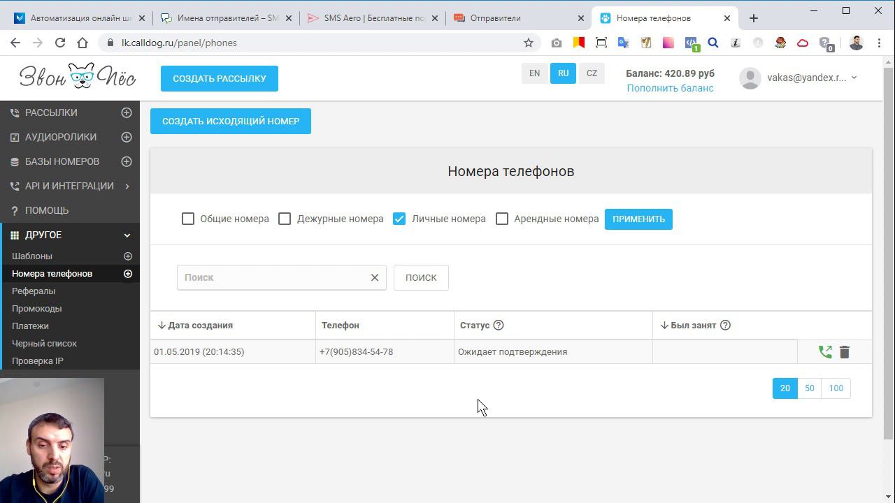 Как указать номер отправителя в Звонопес (calldog.ru)