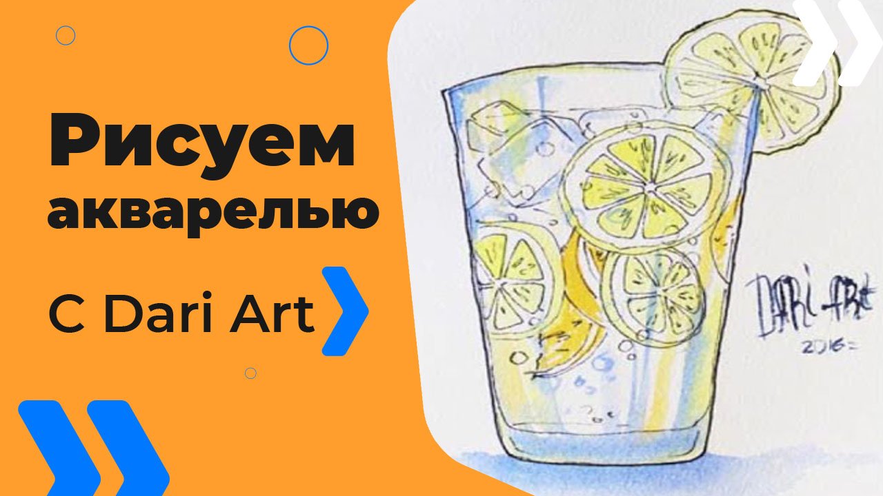 Бесплатный урок рисования! Рисуем лимонад в стакане! Акварельный скетчинг для начинающих!