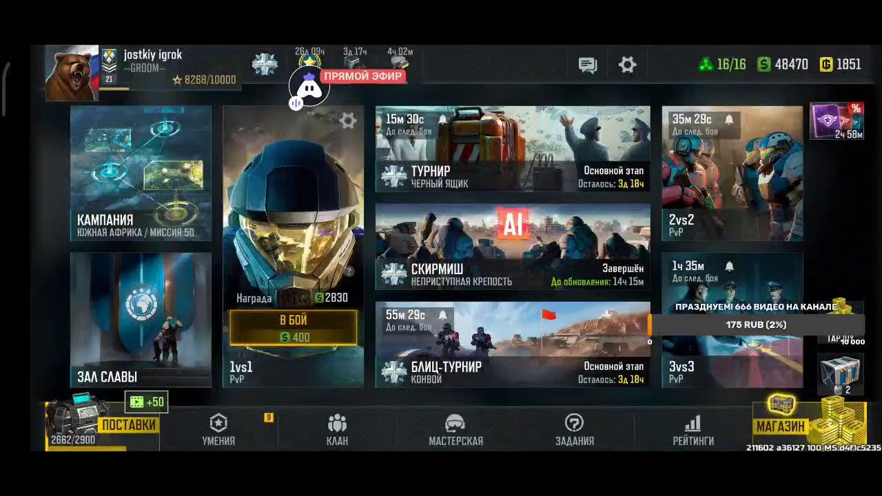 Поддержка автора по ссылке: https://www.donationalerts.com/r/rincks СБЕР 2202 2009 8742 9360 Продлить стрим:300 руб Смена фракции:200 руб Тренировка:300 руб 2х2: по совести Покажи кач: миллион рублей Закончить стрим:1000 руб Так же можно заказать челлендж. тоесть дать стримеру задание за определенную сумму. Например: сыграть только авиацией или вообще без неё,ну и так далее. Ссылка на игру: Долго искал настоящую стратежку на телефон, как старкрафт. Наконец нашел Art of War 3! Очень крутая игра! Вот ссылка, качай, тебе понравится: https://redirect.appmetrica.yandex.com/serve/169878688668608468?recruiter_id=1111515909
