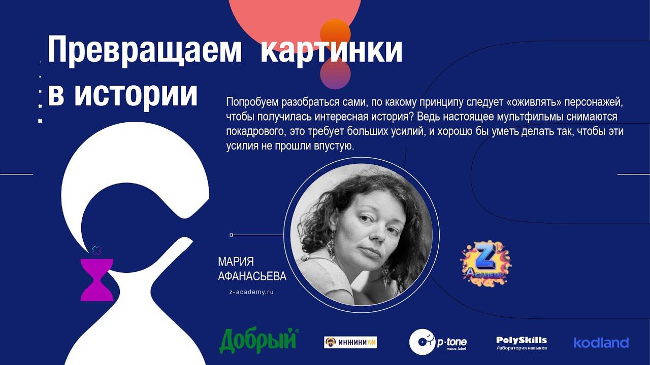 Мастер-класс конкурса Skkidschallenge: «Превращаем истории в картинки. Как создать раскадровку». На мастер-классе разберемся: Какие моменты истории станут будущими кадрами Как правильно выстроить эти кадры Как задумать и воплотить «оживление» своих персонажей Спикер: Мария Афанасьева Сценарист, режиссёр, продюсер, педагог. Подробнее познакомиться с курсом Марии можно на сайте www.z-academy.ru