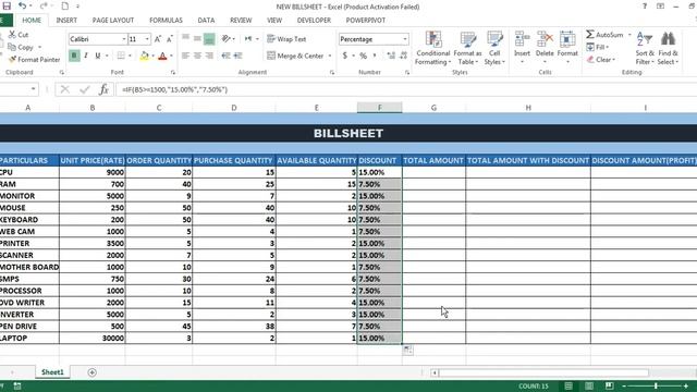 In This Is Video You Will Learn How to Create Bill sheet(DISCOUNT SHEET) in MS Excel Hindi,