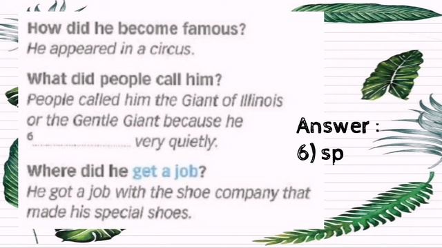 Answers for Exercise 3 ( Robert Wadlow) English Plus 1 Year 5 (pg 76)