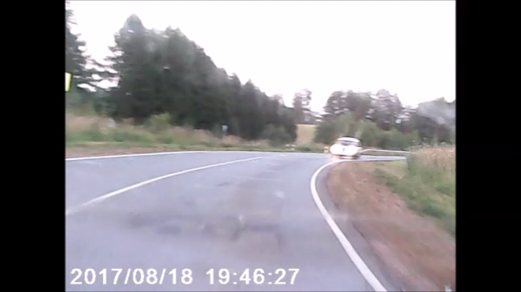 Водитель встречного авто решил пойти на обгон на крутом повороте и чуть не спровоцировал аварию.
