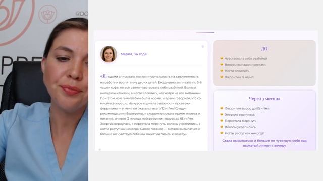 🔴 ЗАПИСАТЬСЯ НА КУРС: https://drpreggy.ru/go/ferrum ФЕРРИТИН И ЖЕЛЕЗО: КЛЮЧ К ВАШЕЙ ЭНЕРГИИ | Как повысить уровень железа естественным путем Дефицит железа - одна из самых распространенных проблем здоровья, от которой страдает 30% женщин репродуктивного возраста. 8 из 10 женщин имеют низкий ферритин даже при нормальном гемоглобине! В этом вебинаре вы узнаете: - Почему "лени" не существует, а есть только дефицит железа и нехватка дофамина - Как железодефицит маскируется под депрессию, гипотиреоз и другие заболевания - 7 ключевых функций железа: энергия, иммунитет, щитовидная железа, гормоны, настроение - Какие анализы на самом деле нужно сдавать (одного гемоглобина недостаточно!) - Почему вы постоянно мерзнете, теряете волосы и ощущаете хроническую усталость - Как железодефицит влияет на фертильность и способность зачать ребенка - Безопасные способы восполнения железа без побочных эффектов Дефицит железа - это не просто усталость. Это снижение работоспособности, проблемы с щитовидной железой, ухудшение менструальной функции, снижение фертильности, тревоги и депрессии, нарушение терморегуляции и ослабление иммунной системы. Поймите истинные причины своей нехватки энергии и узнайте, как вернуть себе яркую, полноценную жизнь! Восстановите свои запасы железа естественным путем и почувствуйте, как возвращается энергия, улучшается настроение и укрепляется здоровье. #ферритин #железо #дефицитжелеза #анемия #женскоездоровье #энергия #усталость #гипотиреоз #депрессия #щитовиднаяжелеза #бесплодие #гемоглобин #здоровье #гормоны #менструальныйцикл #иммунитет #выпадениеволос