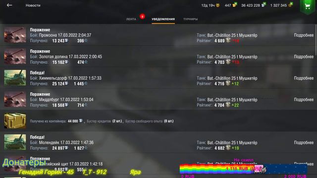 World of Tanks Blitz-Легендарный танковый шутер. Сражайся в командных боях 7 на 7 в одиночку или с друзьями, исследуй и улучшай бронетехнику, пробуй разные тактики и побеждай. Выбери танк и отправляйся в бой! ⭕️Ссылка на донат-1: https://donate.qiwi.com/payin/kroun ⭕️Ссылка донатпей-2: https://new.donatepay.ru/@285354 ⭕️Ссылка на донат-3: https://streamlabs.com/x_evi1_99 ⭕️Сбер:4274320054603900 ⭕️Мой ник в игре: x_Evi1_ ⭕️Любой подписчик моего канала может поиграть со мной во взводе! 🔰 Ссылка на мой Discord: https://discord.gg/7pnHrf9 🔰 Моя подробная статистика: https://wblitz.net/stat/ru/x_Evi1_ 🔰 Моя группа в ВК: https://vk.com/club91657949 🔰 Ищи меня на Trovo: https://trovo.live/x_Ev1l_?adtag=user.x_Ev1l_.clip ⚠️Немного о себе⚠️ Всем привет! Меня зовут Михаил, мне 22 года. Я начинающий стример игры World of Tanks Blitz. Играю в эту игру 5 ЛЕТ. Имею 66% по аккаунту и 1900+ среднего урона! Боев в общем 25+к. Часто играю во взводе. А так же я часто фанюсь, играю во взводе с подписчиками! Думаю, тебе будет нескучно! Залетай на стримы и не забывай ставить лааайк. Support the stream: https://streamlabs.com/x_evi1_99 Powered by Restream https://restream.io/ #ТАНКИ #BLITZ #wotblitz