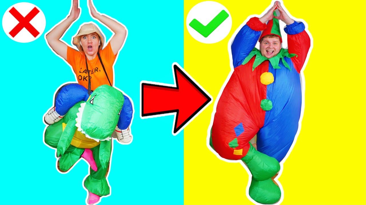 БЕЗУМНАЯ ЙОГА в Гигантских Костюмах ! ЧЕЛЛЕНДЖ КЛОУН vs ДИНОЗАВР