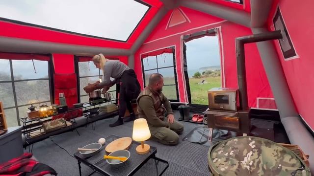 Мы разбили лагерь на краю скали во время грозы