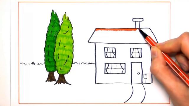 Учим рисовать детей _ Раскрашиваем дом и дерево цветными фломастерами, изучаем цвета