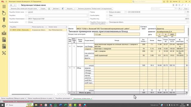 Заполнение меню фактического питания. Типовое меню - актуально с 1 марта. "Бонус-трек" - "как за пару минут в день делать всю документацию пищеблока школы" - иллюстрация из живой компьютерной программы
