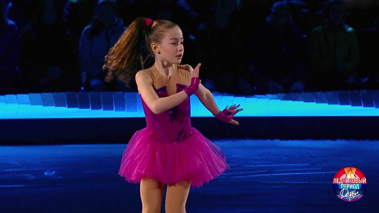Первый соревновательный этап. Одиночное катание. Девочки. Музыкальная тема — "Легендарные фильмы и мюзиклы". Спортсменка из команды Татьяны Навки представляет номер на музыку из фильма "Танцующая в темноте".