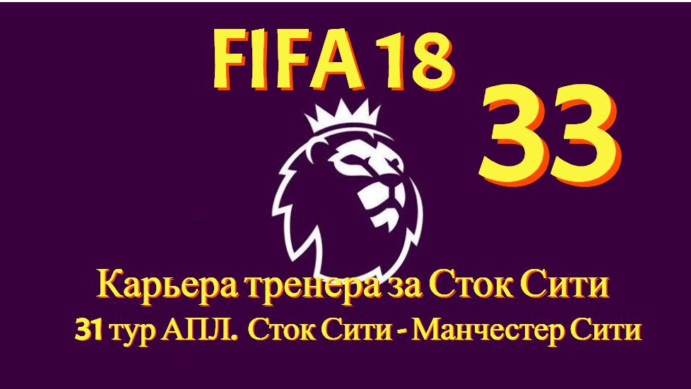 FIFA 18. Карьера тренера за Сток Сити #33. Матч 31 тура АПЛ. Сток Сити - Манчестер Сити.