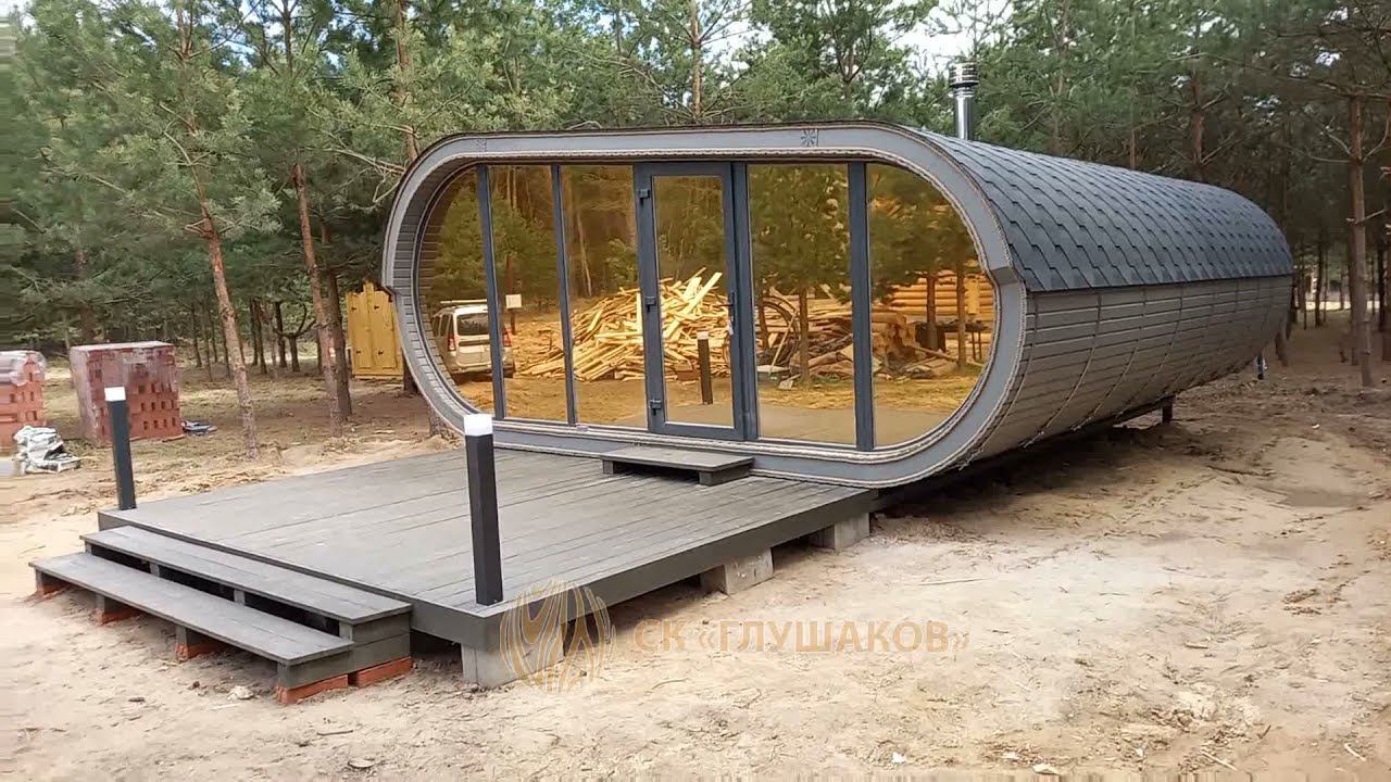 Баня с панорамным окном необычная и красивая