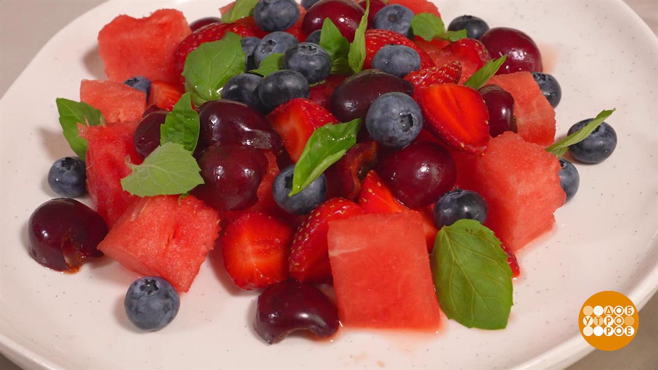 Летний салат из арбуза и ягод. Доброе утро. Фрагмент выпуска от 16.08.2024