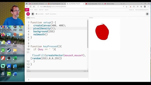 I'm showing off a work-in-process art maker in p5.js. I talk about how to preload many images, using a clipping mask to put a pattern inside a circle, using a floodfill algorithm to fill in irregular shapes, producing small test images that can then be expanded to a larger final version, and how I plan to use principles of art composition to improve on this work. generative art creative coding. The Art Maker WIP: https://editor.p5js.org/StevesMakerspace/sketches/3S6p4PHpg Image load and mask clipping example: https://editor.p5js.org/StevesMakerspace/sketches/ZKo1uczWR Jeff Thompson's Masking Images video: https://www.youtube.com/watch?v=V-8FE_IQONY Kazuki Umeda's Masking Effect video: https://www.youtube.com/watch?v=_Nj49oc5WO4 czartacus's floodfill post on reddit (includes his code): https://www.reddit.com/r/p5js/comments/rhzvvr/a_flood_fill_algorithm_i_couldnt_find_any_for_p5/?utm_source=share&utm_medium=web2x&context=3 Background maker: https://editor.p5js.org/StevesMakerspace/sketches/2b4KWvp9O Join the Generative Discord: https://discord.gg/cbz6ePJx Join my Discord: https://discord.gg/FSW6zzU Follow me on Twitter: https://twitter.com/SteveMakerspace 0:00 Intro 2:03 Preloading many images 3:11 Clipping mask to put a pattern inside a circle 4:45 Picking colors and drawing shapes 6:32 Using Perlin noise to create white space 7:15 Floodfill algo for filling irregular shapes 9:26 Small test size and large final size 12:19 Art composition and ideas for improvement Music: Funk Down (Sting) by MK2 (theme)